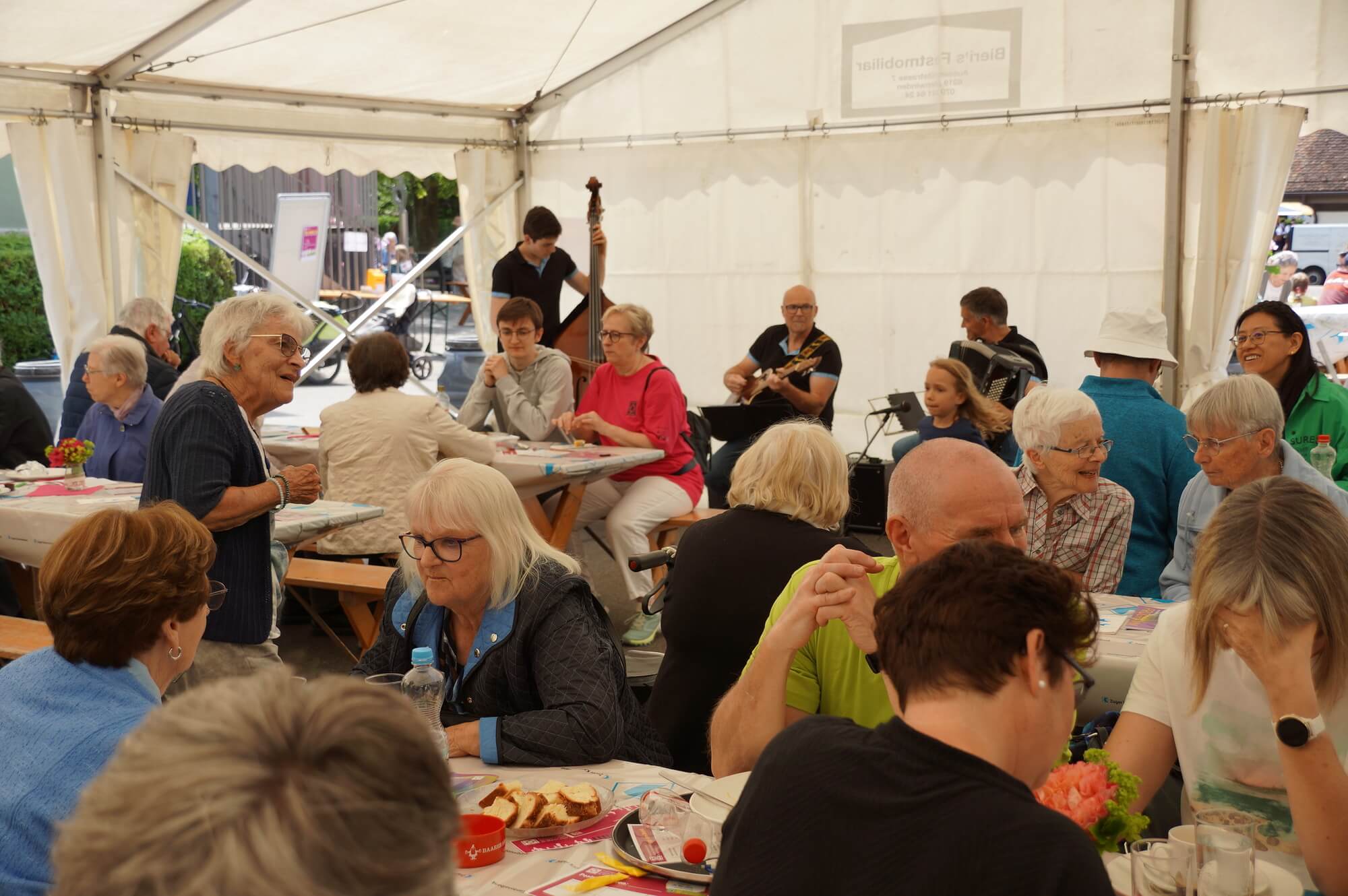 Unser Fest am Samstag, 24. Mai 2025 im und um den Gemeindesaal Baar sieht folgendermassen aus: